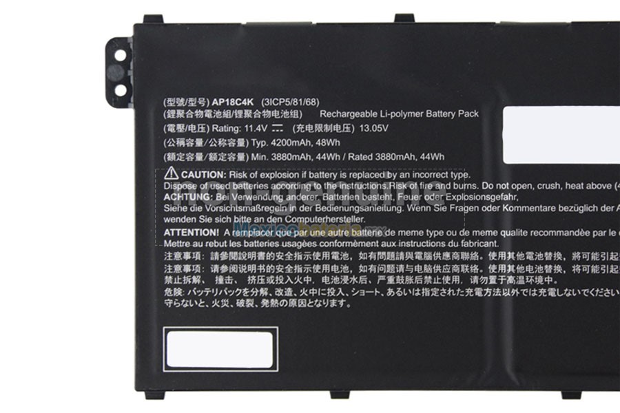Mexicobateria.mx vende baterías de alta calidad, garantizamos su compatibilidad y mejora del rendimiento de la batería original. Nuestras Acer SWIFT 3 SF314-42-R4XJ batería se producen de acuerdo con los estándares más exigentes y, luego de estrictos procesos de selección y control de calidad, cumple con la Norma CE. Ofrecemos la batería con una mayor capacidad a un precio muy competitivo, su puerto es de material aislado metálico y sólido de alta calidad para garantizar una entrada de corriente estable y su durabilidad. La mejor batería depende de su marca, precio y variedad, en Mexicobateria.mx puede tener todos estos, el producto se envia desde México y 100% seguros para comprar.