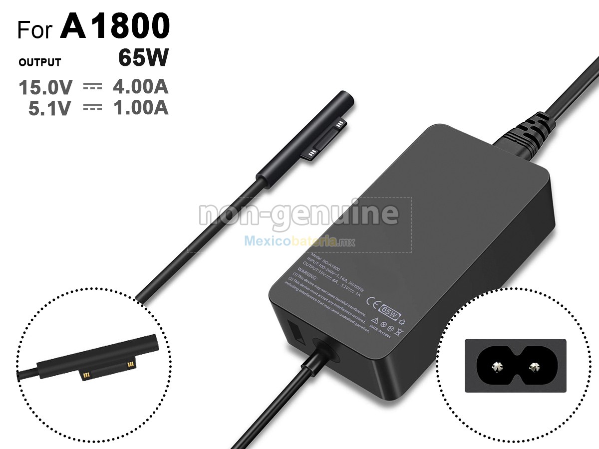 Nos especializamos en cargador Microsoft A1800 de reemplazo compatibles de alta calidad, cumpliendo con los estándares de seguridad y calidad más exigentes. Al obtener nuestros productos directamente de los fabricantes, te ofrecemos precios más competitivos sin comprometer el rendimiento ni la confiabilidad del producto. Los conectores del adaptador están optimizados para asegurar una conexión estable y una larga vida útil.