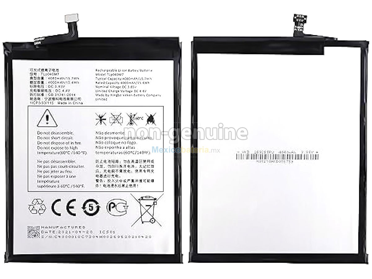 - Todas nuestras Alcatel TLP040M7 batería compatibles para portátil cuentan con los certificados de CE, UL, ROHS, ISO9001/ 9002, sus diseños cumplen o superan los requisitos de la norma OEM, son productos seguros, 100% seguros para comprar.