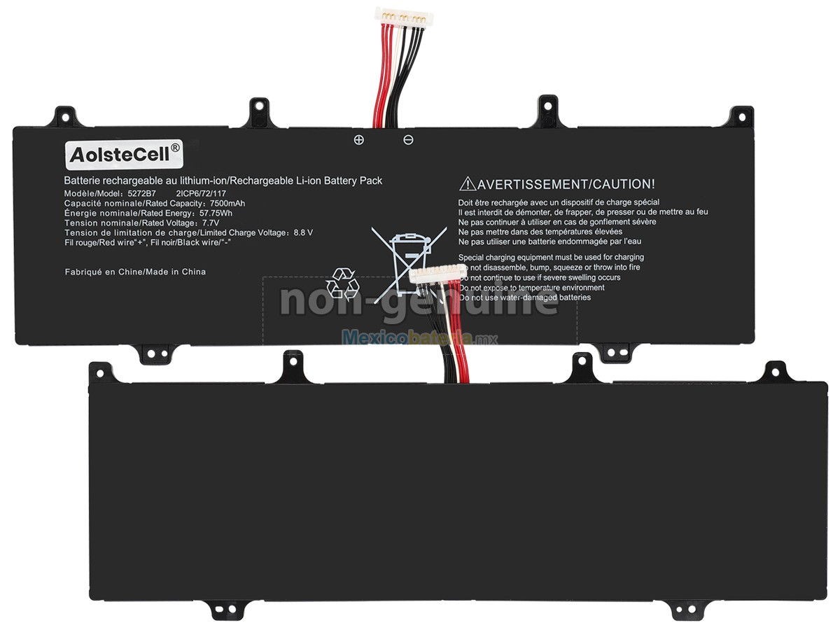 Mexicobateria.mx vende baterías de alta calidad, garantizamos su compatibilidad y mejora del rendimiento de la batería original. Nuestras AolsteCell 5272B7 batería se producen de acuerdo con los estándares más exigentes y, luego de estrictos procesos de selección y control de calidad, cumple con la Norma CE. Ofrecemos la batería con una mayor capacidad a un precio muy competitivo, su puerto es de material aislado metálico y sólido de alta calidad para garantizar una entrada de corriente estable y su durabilidad. La mejor batería depende de su marca, precio y variedad, en Mexicobateria.mx puede tener todos estos, el producto se envia desde México y 100% seguros para comprar.