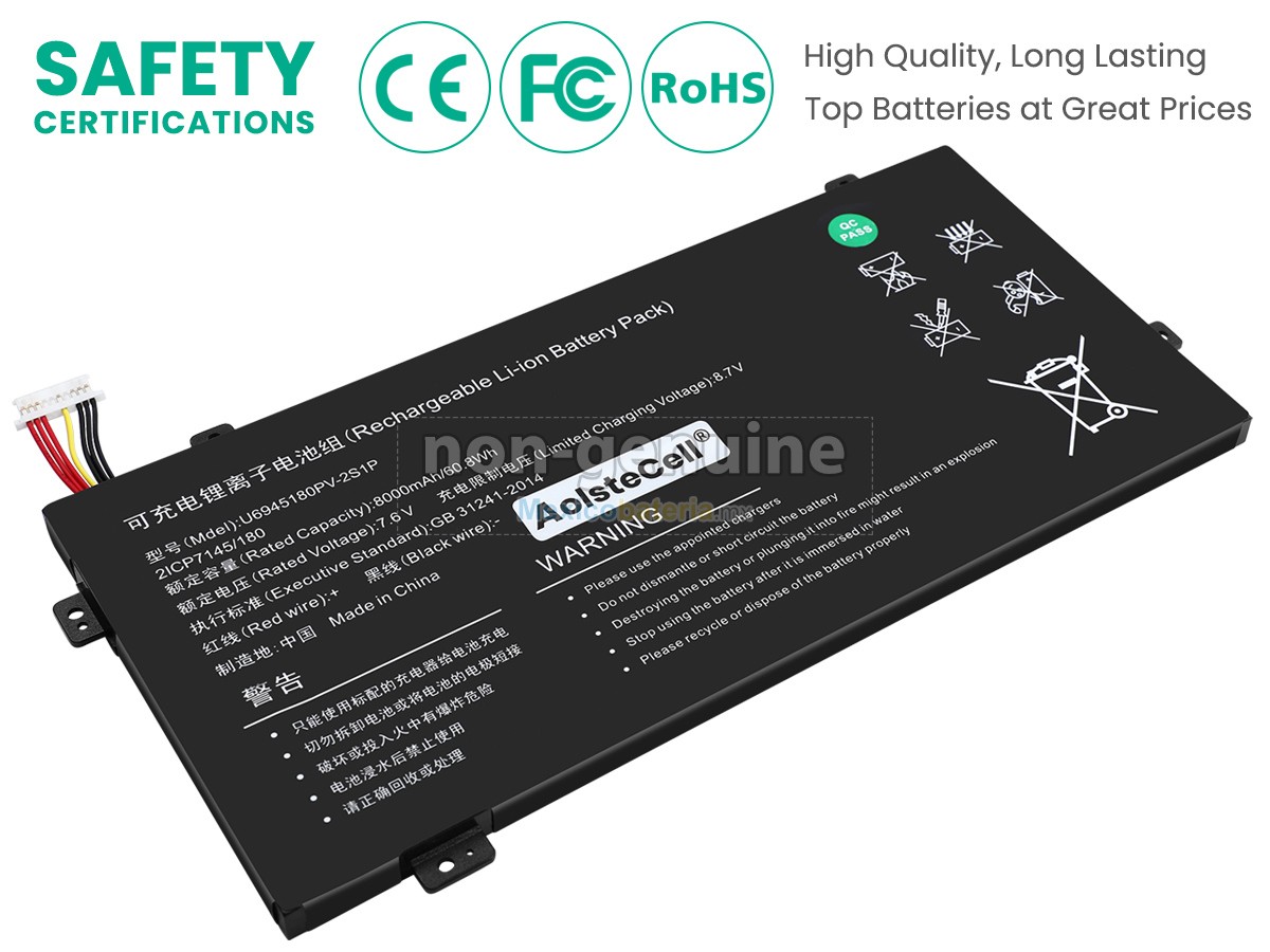 - Todas nuestras AolsteCell U6945180PV-2S1P batería compatibles para portátil cuentan con los certificados de CE, UL, ROHS, ISO9001/ 9002, sus diseños cumplen o superan los requisitos de la norma OEM, son productos seguros, 100% seguros para comprar.