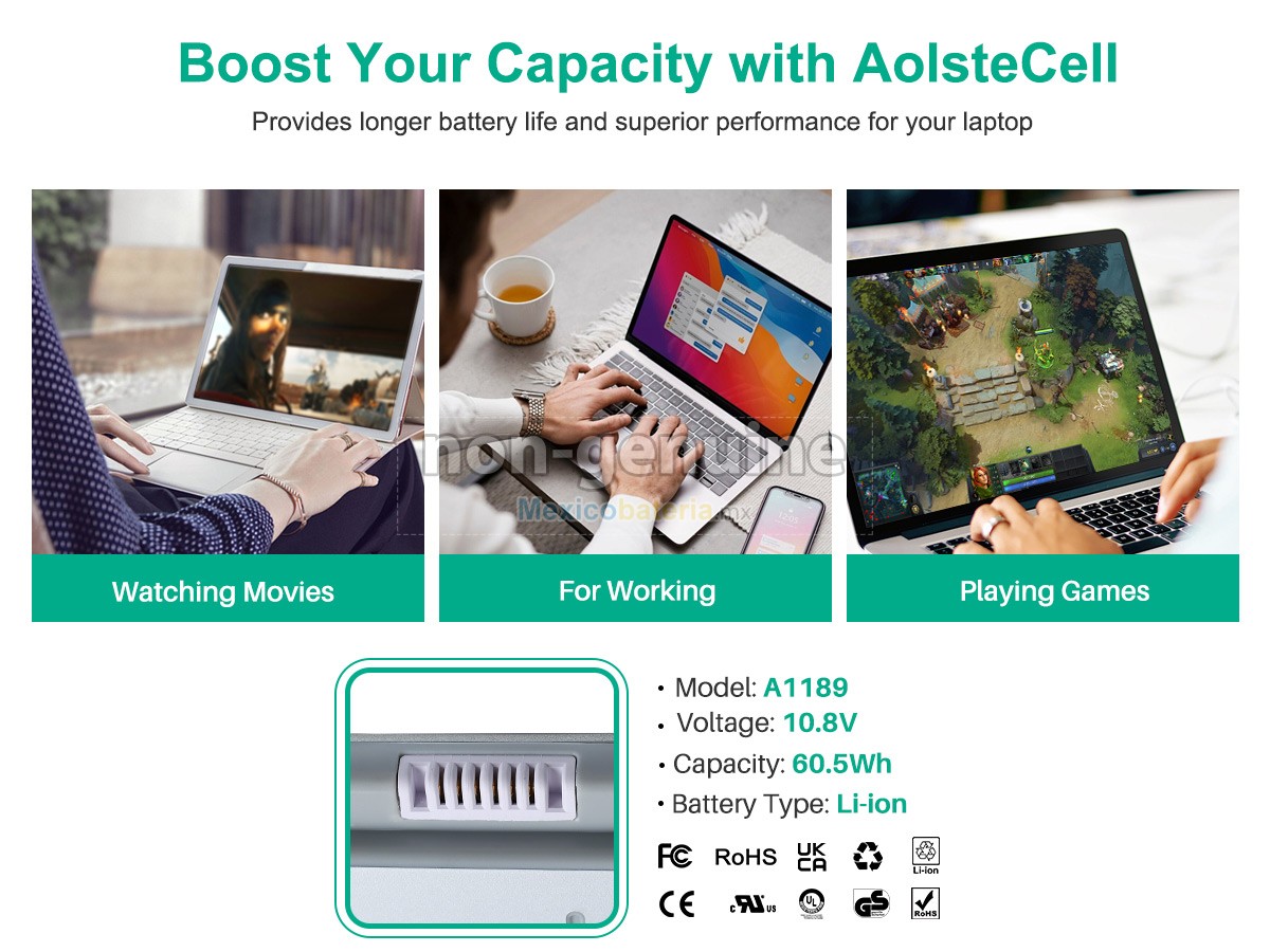 - Todas nuestras Apple MA458*/A batería compatibles para portátil cuentan con los certificados de CE, UL, ROHS, ISO9001/ 9002, sus diseños cumplen o superan los requisitos de la norma OEM, son productos seguros, 100% seguros para comprar.