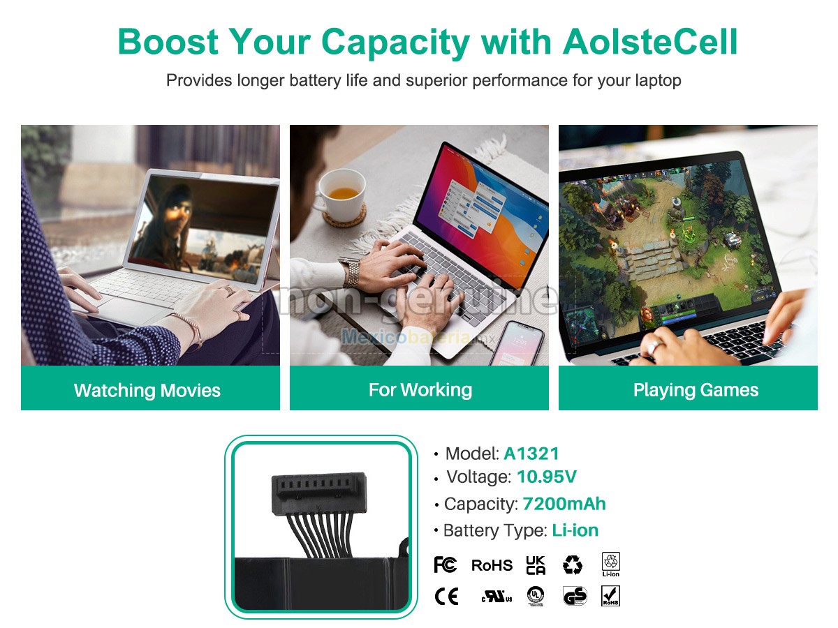 Mexicobateria.mx vende baterías de alta calidad, garantizamos su compatibilidad y mejora del rendimiento de la batería original. Nuestras Apple MacBook Pro Core I7 2.8GHZ 15.4 inch A1286(EMC 2353*) batería se producen de acuerdo con los estándares más exigentes y, luego de estrictos procesos de selección y control de calidad, cumple con la Norma CE. Ofrecemos la batería con una mayor capacidad a un precio muy competitivo, su puerto es de material aislado metálico y sólido de alta calidad para garantizar una entrada de corriente estable y su durabilidad. La mejor batería depende de su marca, precio y variedad, en Mexicobateria.mx puede tener todos estos, el producto se envia desde México y 100% seguros para comprar.