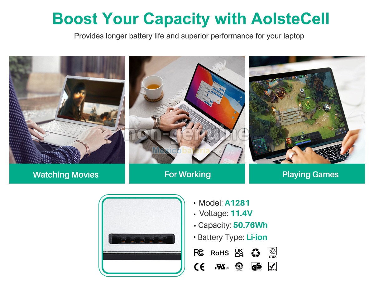 - Todas nuestras Apple MB772J/A batería compatibles para portátil cuentan con los certificados de CE, UL, ROHS, ISO9001/ 9002, sus diseños cumplen o superan los requisitos de la norma OEM, son productos seguros, 100% seguros para comprar.