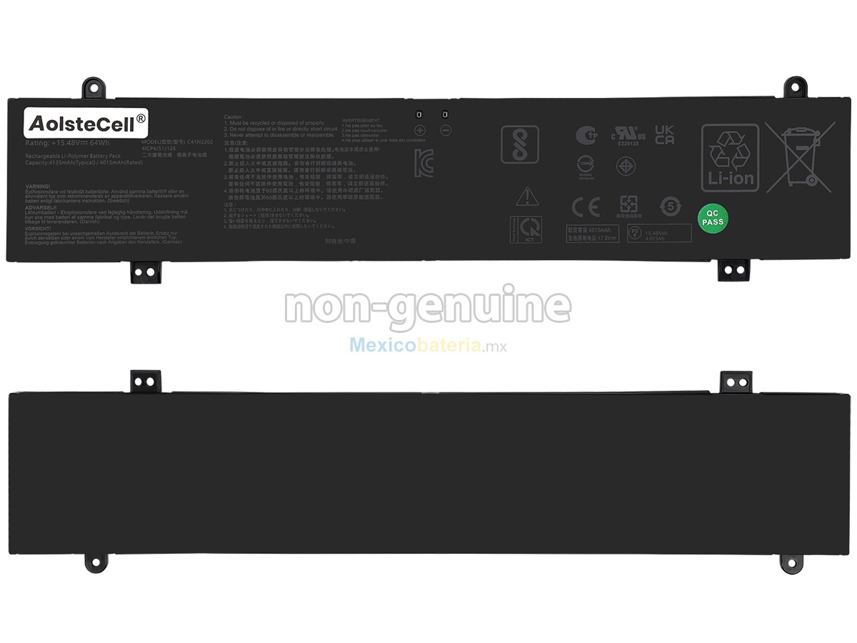 Mexicobateria.mx vende baterías de alta calidad, garantizamos su compatibilidad y mejora del rendimiento de la batería original. Nuestras Asus 0B200-04300000 batería se producen de acuerdo con los estándares más exigentes y, luego de estrictos procesos de selección y control de calidad, cumple con la Norma CE. Ofrecemos la batería con una mayor capacidad a un precio muy competitivo, su puerto es de material aislado metálico y sólido de alta calidad para garantizar una entrada de corriente estable y su durabilidad. La mejor batería depende de su marca, precio y variedad, en Mexicobateria.mx puede tener todos estos, el producto se envia desde México y 100% seguros para comprar.