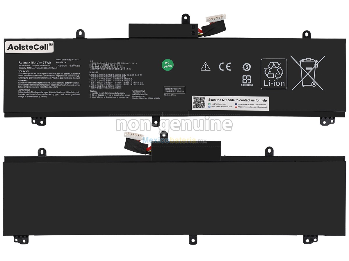 La batería de reemplazo Asus Rog ZEPHYRUS GU502GU es 100% compatible con el tamaño original, más adecuada para su ordenador y su diseño de circuito original, se aprovecha de baterías de alta calidad, por lo que tiene rendimiento estable y largo tiempo de espera. La batería Asus Rog ZEPHYRUS GU502GU de México tiene una entrega más rápida, el mejor precio y el servicio postventa más perfecta. Comprar batería de reemplazo Asus Rog ZEPHYRUS GU502GU para diferentes ocasiones de uso. lo que le permite utilizar su portátil Asus Rog ZEPHYRUS GU502GU en cualquier momento y en cualquier lugar.