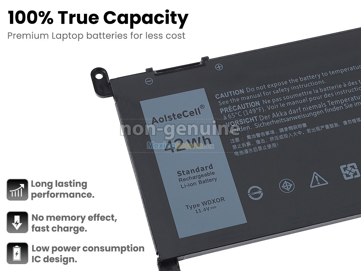 Características de nuestra batería compatible Dell P95G002:- Cada una de nuestras Dell P95G002 batería está fabricada con batería de iones de litio de alta calidad, 100% nueva, suministrada directamente por el fabricante y a mejor precio, con celda seleccionada de alta calidad para un rendimiento seguro de confiable.
