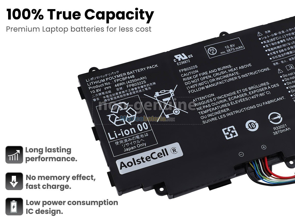 Características de nuestra batería compatible Fujitsu FPCBP448:- Cada una de nuestras Fujitsu FPCBP448 batería está fabricada con batería de iones de litio de alta calidad, 100% nueva, suministrada directamente por el fabricante y a mejor precio, con celda seleccionada de alta calidad para un rendimiento seguro de confiable.