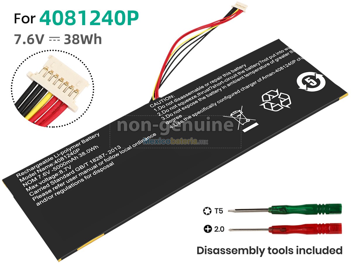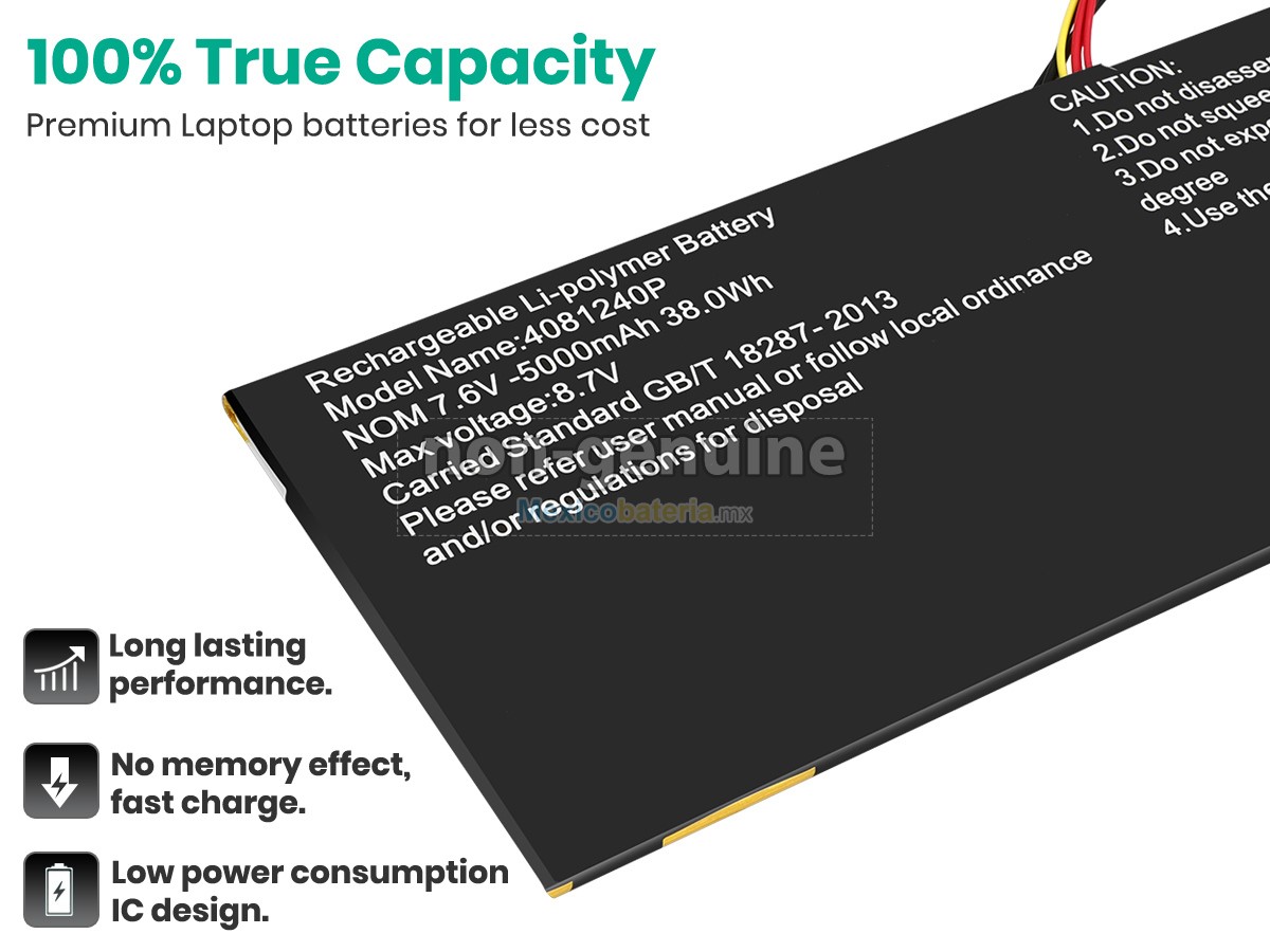 Características de nuestra batería compatible HIPAA 4081240P:- Cada una de nuestras HIPAA 4081240P batería está fabricada con batería de iones de litio de alta calidad, 100% nueva, suministrada directamente por el fabricante y a mejor precio, con celda seleccionada de alta calidad para un rendimiento seguro de confiable.