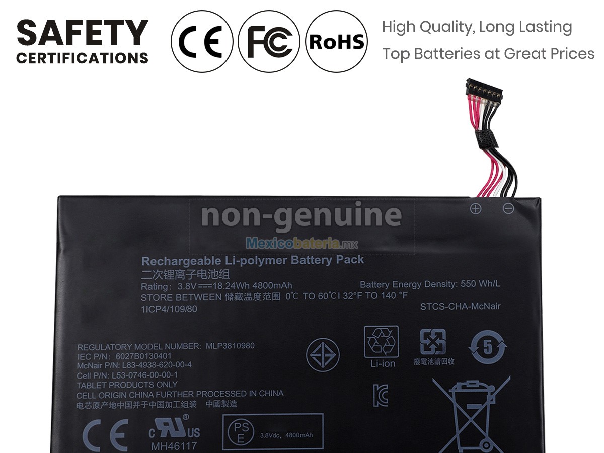 - Es una copia de la batería original con una proporción de 1:1, tiene el tamaño totalmente igual que la original, y con el diseño de circuito original, aprovecha celda de alta calidad para un rendimiento estable y un tiempo de espera largo.