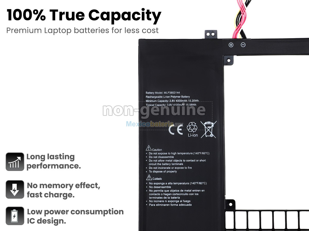 Características de nuestra batería compatible HP MLP3853144-2P:- Cada una de nuestras HP MLP3853144-2P batería está fabricada con batería de iones de litio de alta calidad, 100% nueva, suministrada directamente por el fabricante y a mejor precio, con celda seleccionada de alta calidad para un rendimiento seguro de confiable.