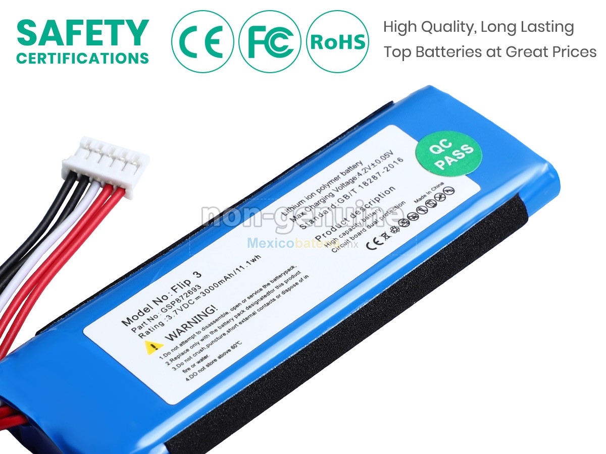 - Todas nuestras JBL FLIP 3 PORTABLE SPEAKER batería compatibles cuentan con los certificados de CE, UL, ROHS, ISO9001/ 9002, sus diseños cumplen o superan los requisitos de la norma OEM, son productos seguros, 100% seguros para comprar.