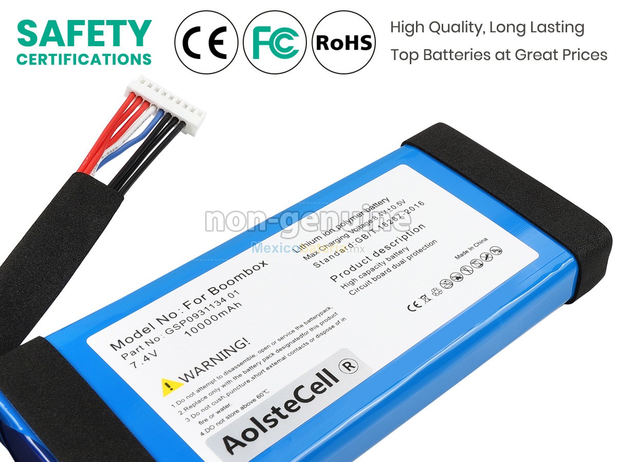 - Todas nuestras JBL GSP0931134 01 batería compatibles cuentan con los certificados de CE, UL, ROHS, ISO9001/ 9002, sus diseños cumplen o superan los requisitos de la norma OEM, son productos seguros, 100% seguros para comprar.