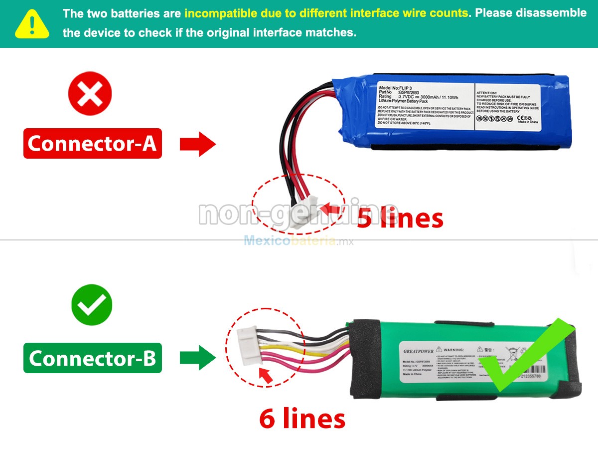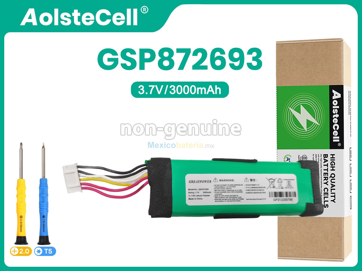 Características de nuestra batería compatible JBL GSP872693:- Cada una de nuestras JBL GSP872693 batería está fabricada con batería de iones de litio de alta calidad, 100% nueva, suministrada directamente por el fabricante y a mejor precio, con celda seleccionada de alta calidad para un rendimiento seguro de confiable.