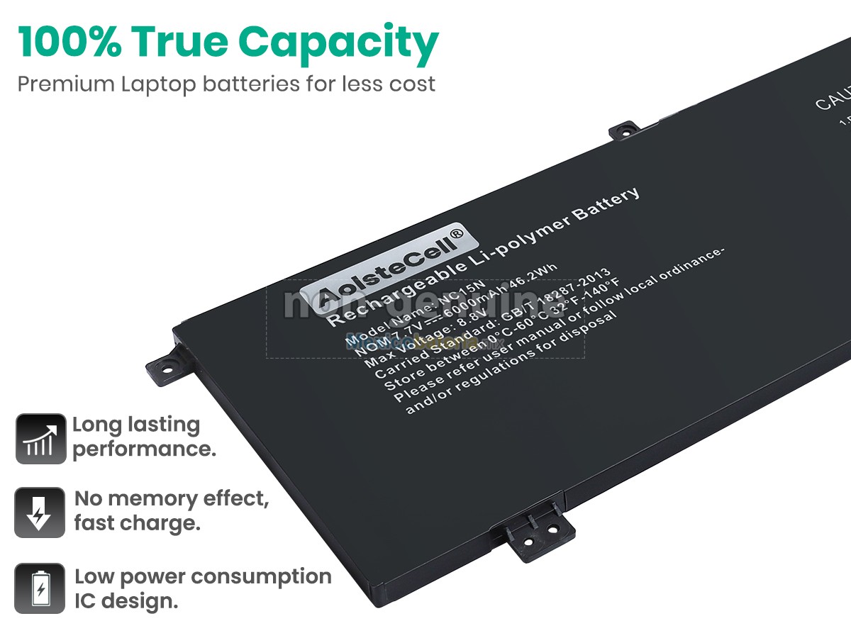 - Todas nuestras KuXi NC15U8 batería compatibles para portátil cuentan con los certificados de CE, UL, ROHS, ISO9001/ 9002, sus diseños cumplen o superan los requisitos de la norma OEM, son productos seguros, 100% seguros para comprar.