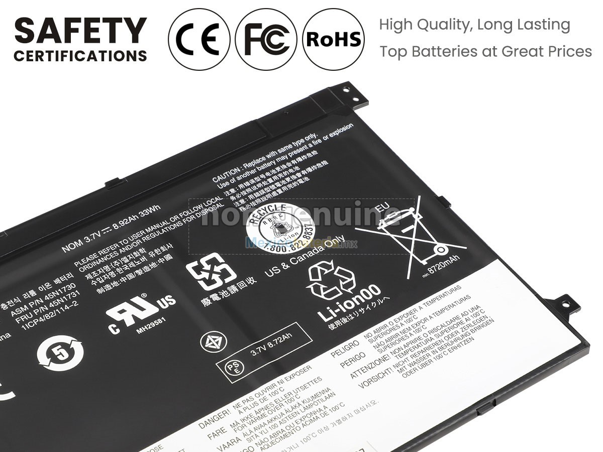 - Todas nuestras Lenovo 45N1732(1ICP4/83/113) batería compatibles para portátil cuentan con los certificados de CE, UL, ROHS, ISO9001/ 9002, sus diseños cumplen o superan los requisitos de la norma OEM, son productos seguros, 100% seguros para comprar.