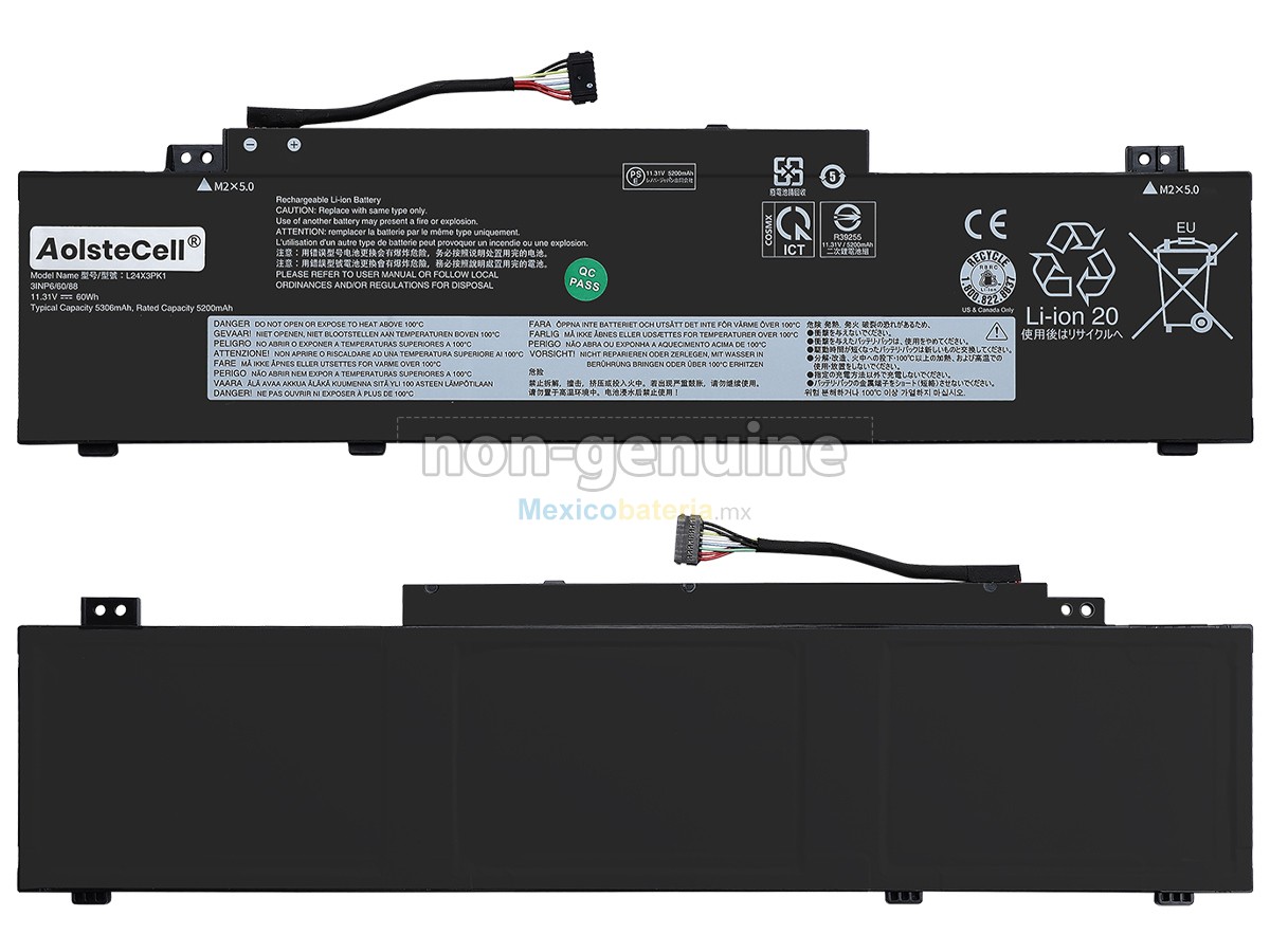 Mexicobateria.mx vende baterías de alta calidad, garantizamos su compatibilidad y mejora del rendimiento de la batería original. Nuestras Lenovo 5B11Q02013 batería se producen de acuerdo con los estándares más exigentes y, luego de estrictos procesos de selección y control de calidad, cumple con la Norma CE. Ofrecemos la batería con una mayor capacidad a un precio muy competitivo, su puerto es de material aislado metálico y sólido de alta calidad para garantizar una entrada de corriente estable y su durabilidad. La mejor batería depende de su marca, precio y variedad, en Mexicobateria.mx puede tener todos estos, el producto se envia desde México y 100% seguros para comprar.