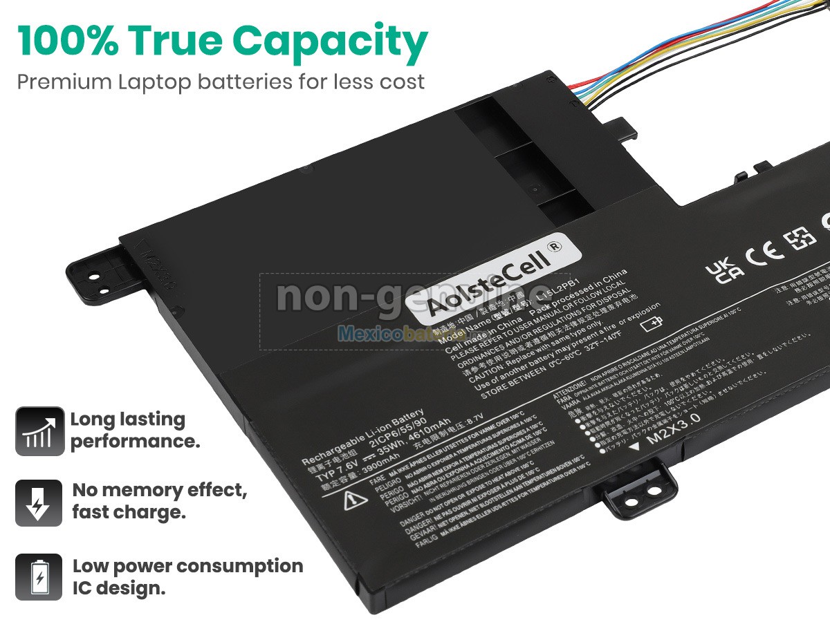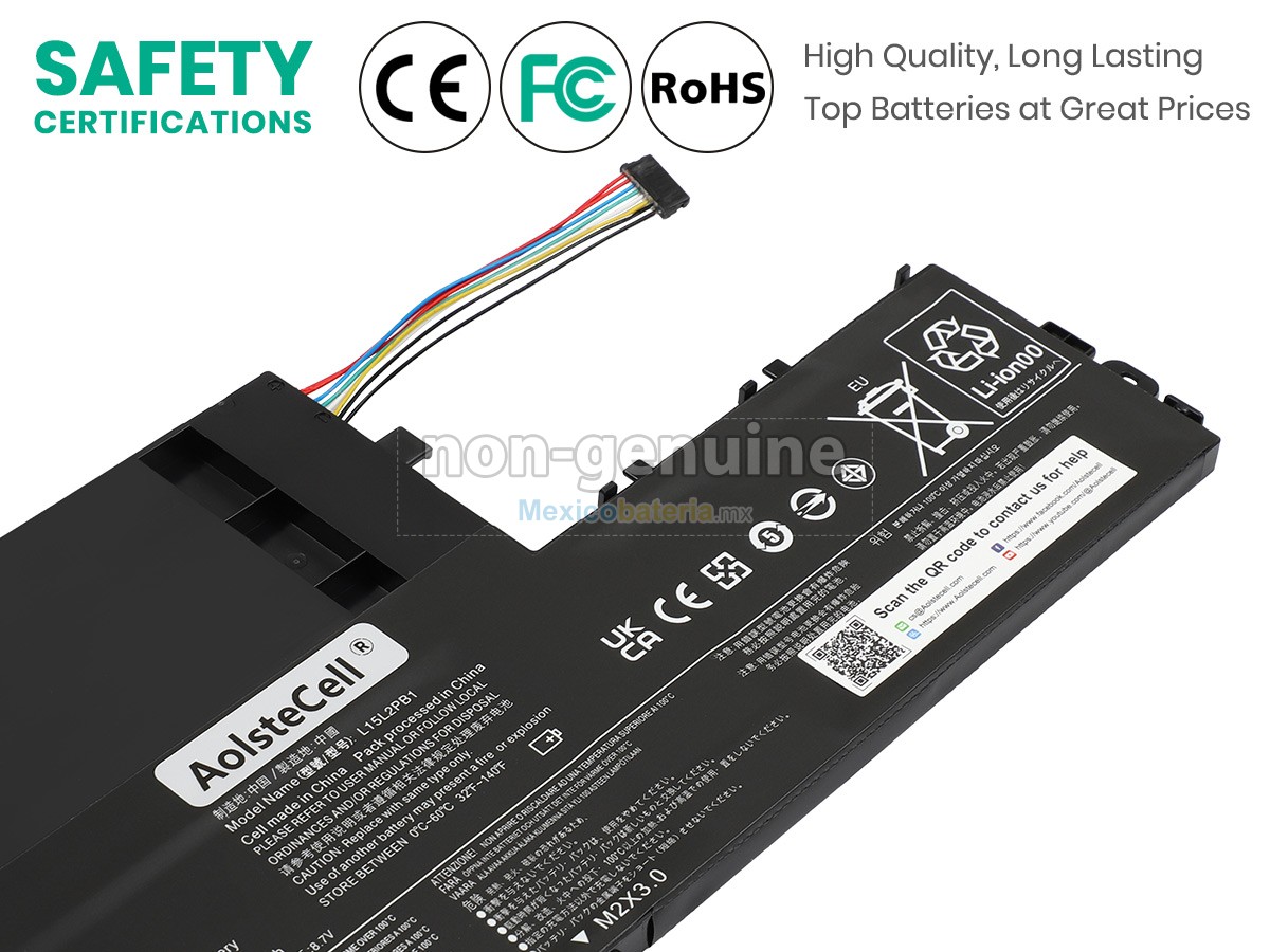 - Todas nuestras Lenovo L15L2PB1(2ICP6/55/90) batería compatibles para portátil cuentan con los certificados de CE, UL, ROHS, ISO9001/ 9002, sus diseños cumplen o superan los requisitos de la norma OEM, son productos seguros, 100% seguros para comprar.