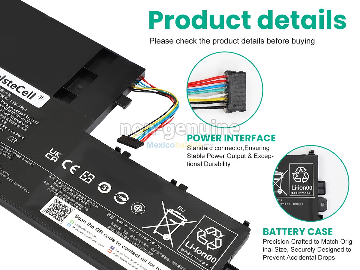 Mexicobateria.mx vende baterías de alta calidad, garantizamos su compatibilidad y mejora del rendimiento de la batería original. Nuestras Lenovo L15L2PB1(2ICP6/55/90) batería se producen de acuerdo con los estándares más exigentes y, luego de estrictos procesos de selección y control de calidad, cumple con la Norma CE. Ofrecemos la batería con una mayor capacidad a un precio muy competitivo, su puerto es de material aislado metálico y sólido de alta calidad para garantizar una entrada de corriente estable y su durabilidad. La mejor batería depende de su marca, precio y variedad, en Mexicobateria.mx puede tener todos estos, el producto se envia desde México y 100% seguros para comprar.