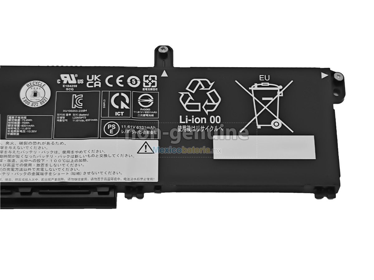 Mexicobateria.mx vende baterías de alta calidad, garantizamos su compatibilidad y mejora del rendimiento de la batería original. Nuestras Lenovo L23M3P73 batería se producen de acuerdo con los estándares más exigentes y, luego de estrictos procesos de selección y control de calidad, cumple con la Norma CE. Ofrecemos la batería con una mayor capacidad a un precio muy competitivo, su puerto es de material aislado metálico y sólido de alta calidad para garantizar una entrada de corriente estable y su durabilidad. La mejor batería depende de su marca, precio y variedad, en Mexicobateria.mx puede tener todos estos, el producto se envia desde México y 100% seguros para comprar.